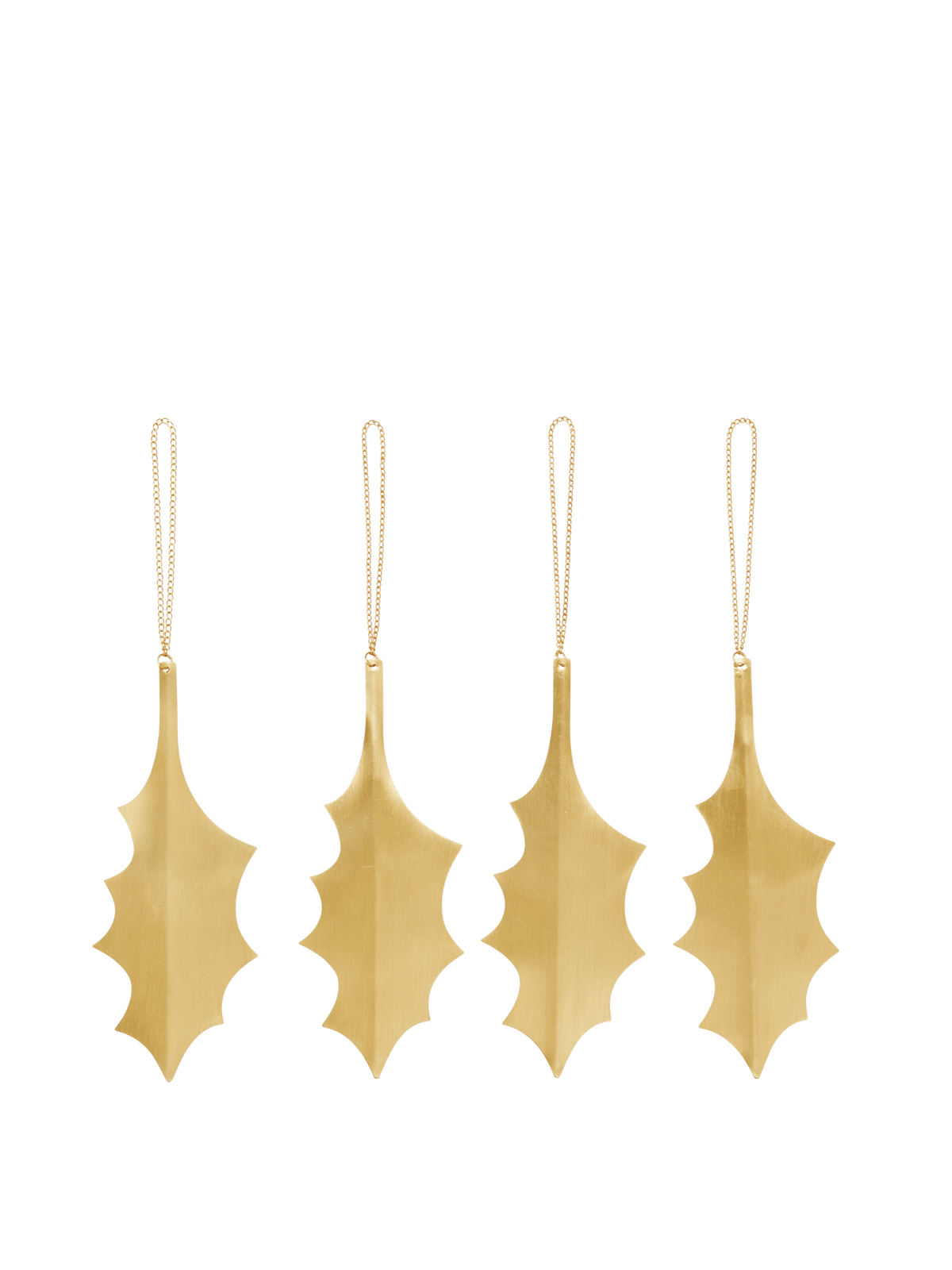Ferm Living Holly Leaf Brass Ornaments (Set of 4)